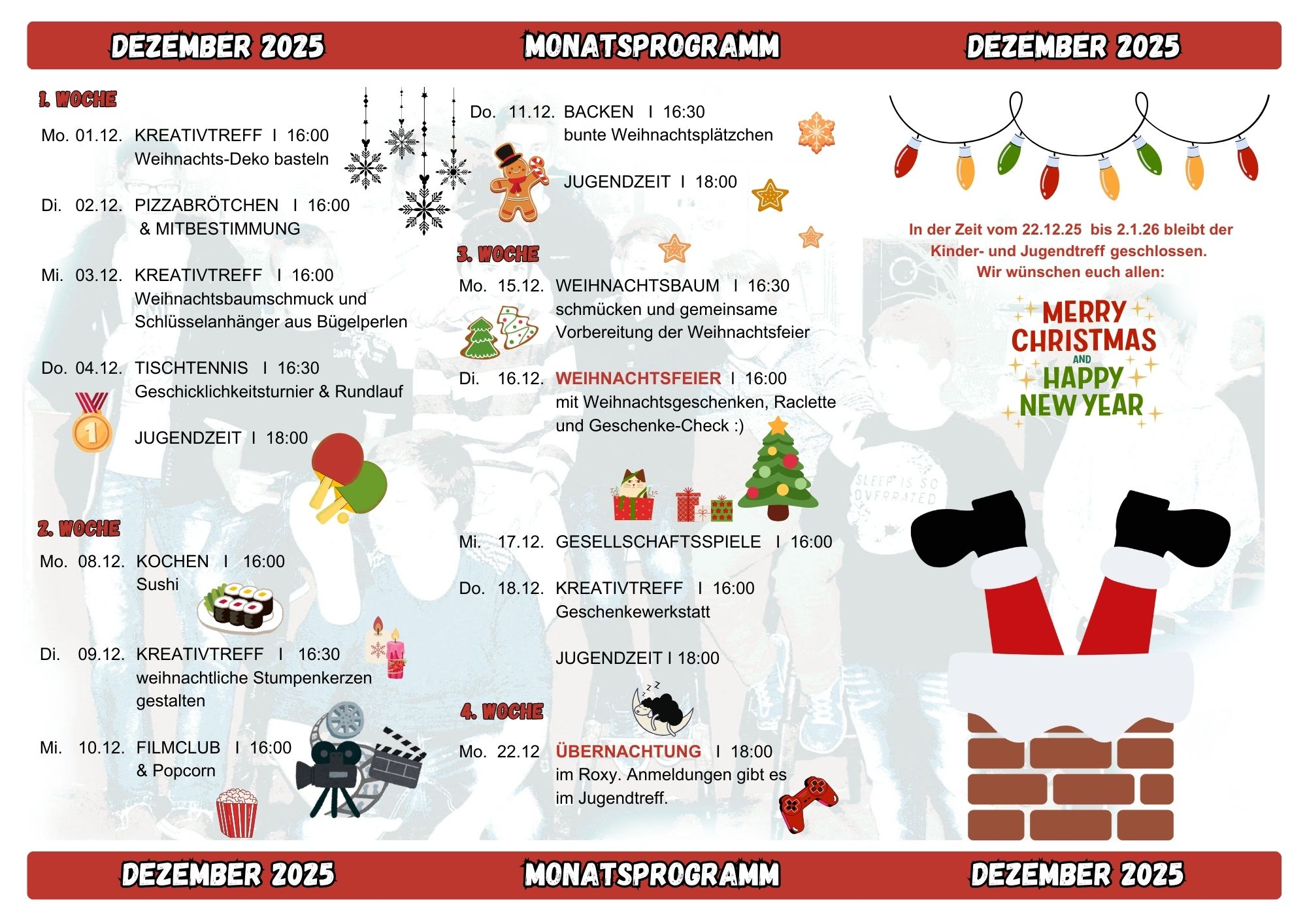 Während der Öffnungszeiten könnt ihr jederzeit kommen und gehen, nette Leute treffen, „chillen“ oder die vielfältigen Möglichkeiten des Treffs nutzen. Anmeldungen sind nur bei besonderen Veranstaltungen nötig.